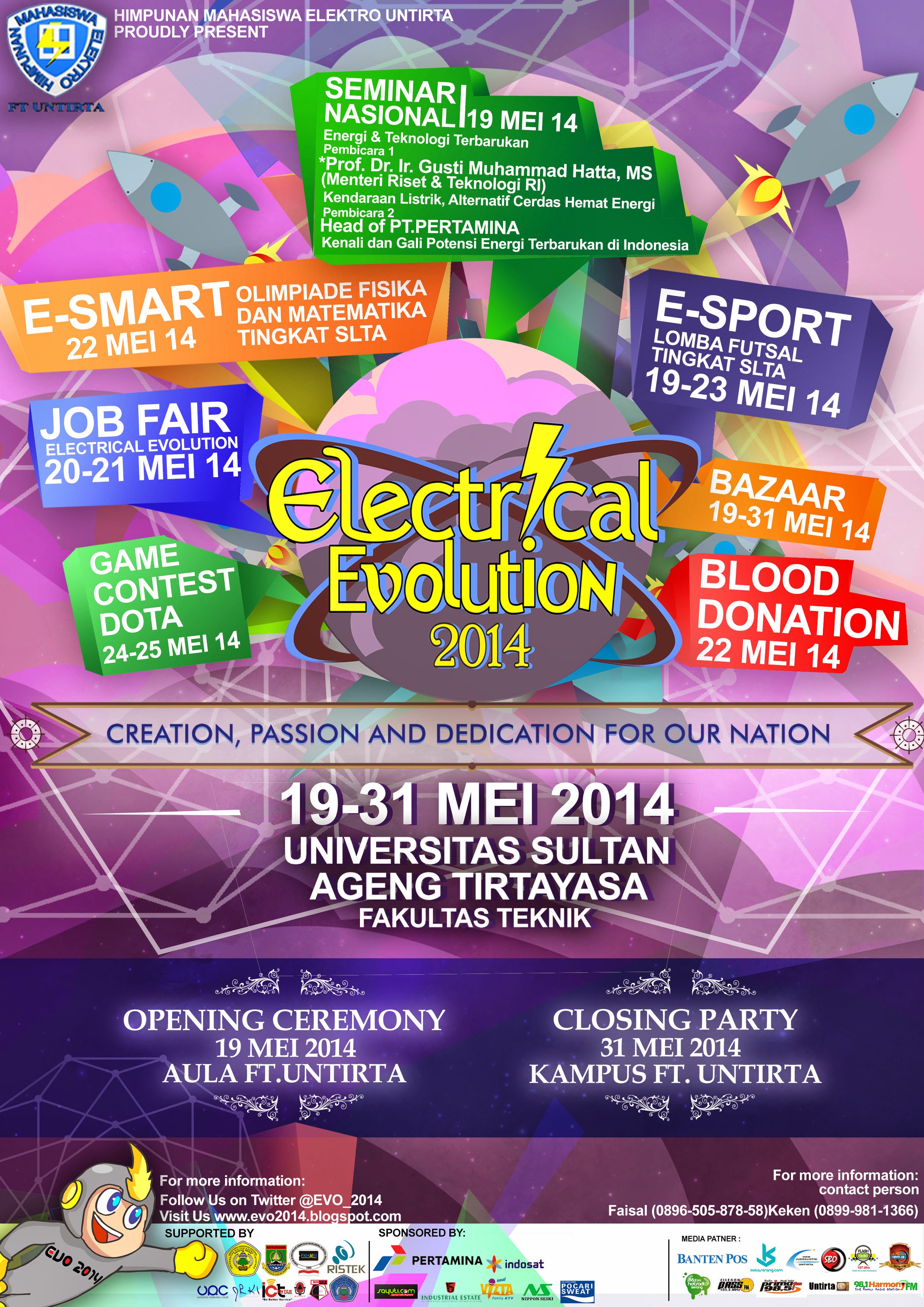 Job Fair (20 – 21 Mei 2014)(CANCELED)Acara Job Fair on Electrical Evolution ini menyediakan bursa kerja bagi para lulusan UNTIRTA dan masyarakat umum serta meningkatkan kemitraan antara perusahaan sebagai penyedia lapangan kerja dengan perguruan tinggi sebagai penyedia SDM khususnya di daerah Banten.